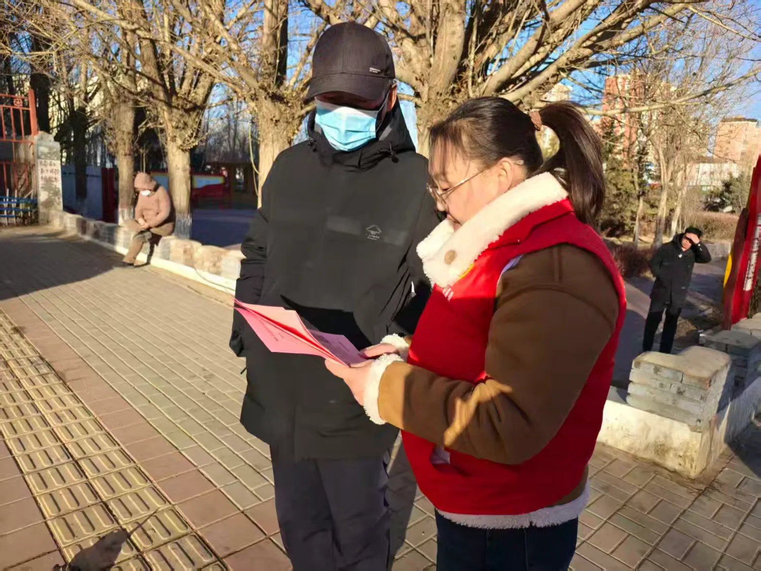 社区工作人员向过往居民发放交通安全知识宣传单,为居民普及行人过街“一停二看三通过”基础交通安全常识,提醒居民切勿闯红灯、随意横穿马路,骑车出行一定要正确佩戴头盔,倡导大家不仅要自身遵守交通规则,还要带动家人朋友共同参与,纠正居民不佩戴头盔、闯红灯、逆行、不礼让行人等交通陋习,营造安全、文明、有序的道路出行环境。